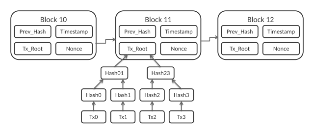 [1] Graphic of data fields in Bitcoin block chain, Matthäus Wander